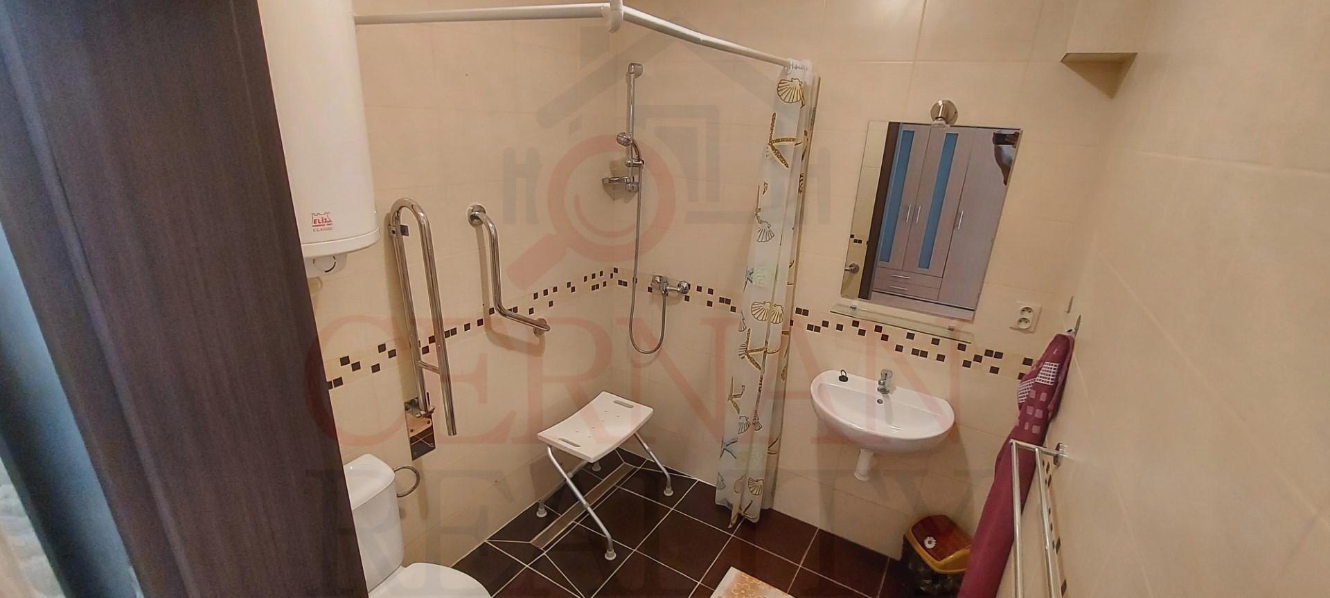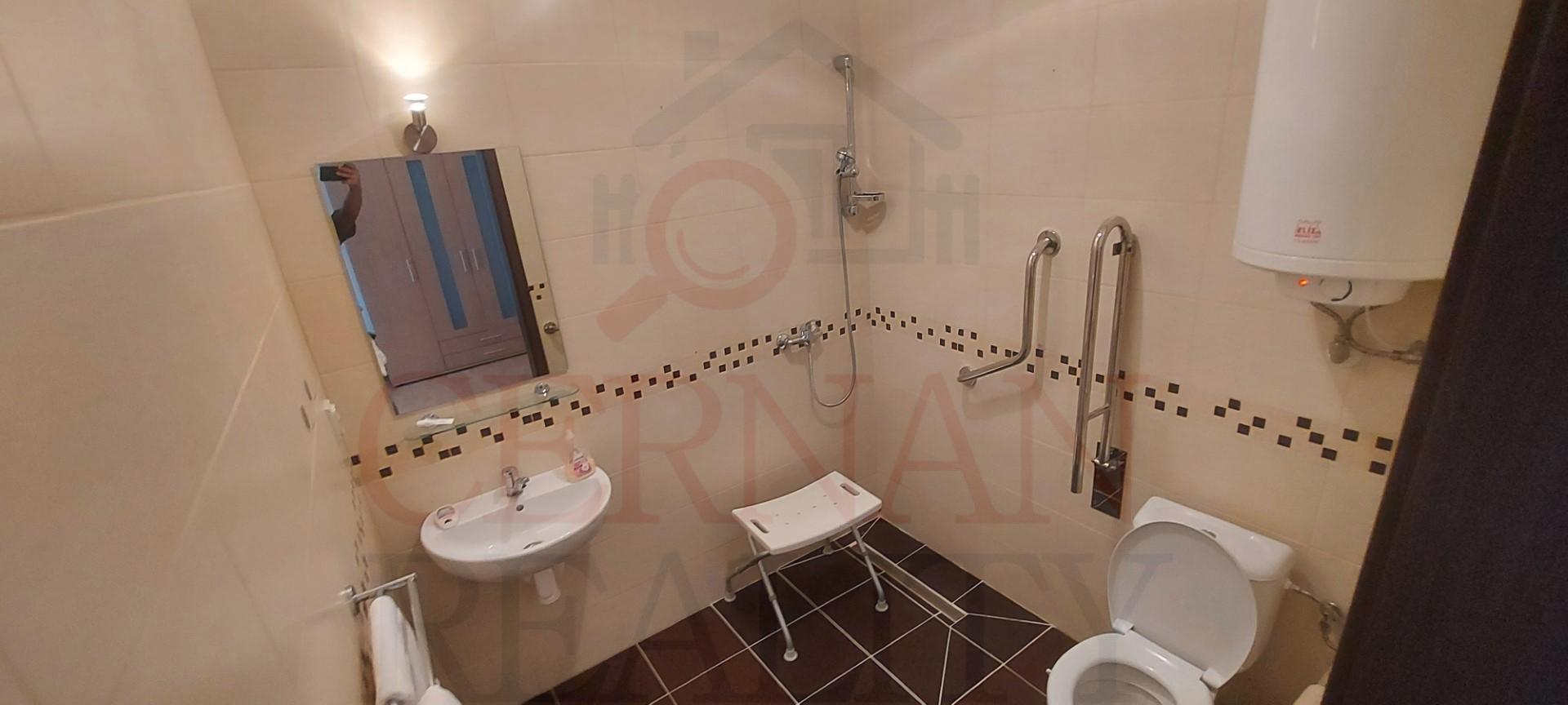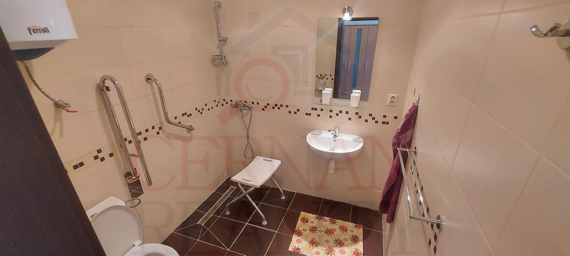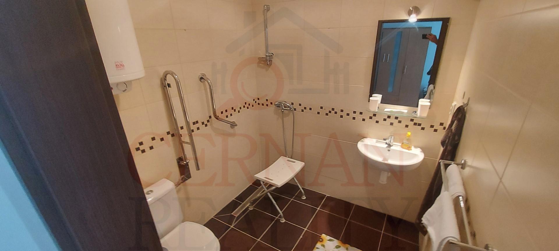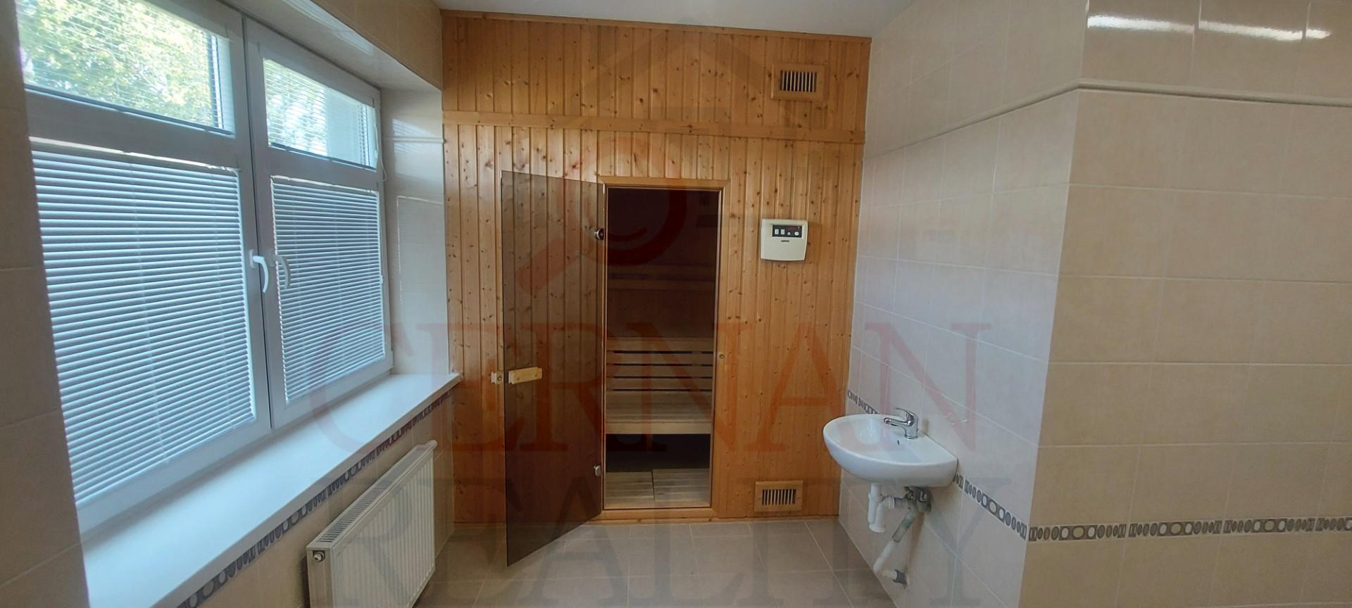 Vybavenie interiéru: veľká spoločenská miestnosť s krbom a barom s vlastným vstupom z exteriéru, recepcia, kancelária, kompletne vybavená kuchyňa s výdajnými okienkami stravy, fínska sauna, relaxačná zóna, práčovňa, žehliareň, sušiareň, šatne pre personál, rôzne sklady, modlitebná miestnosť/kaplnka, technická miestnosť (vchod z exteriéru). Internet s WIFI v celom objekte. Plastové okná v celom objekte.