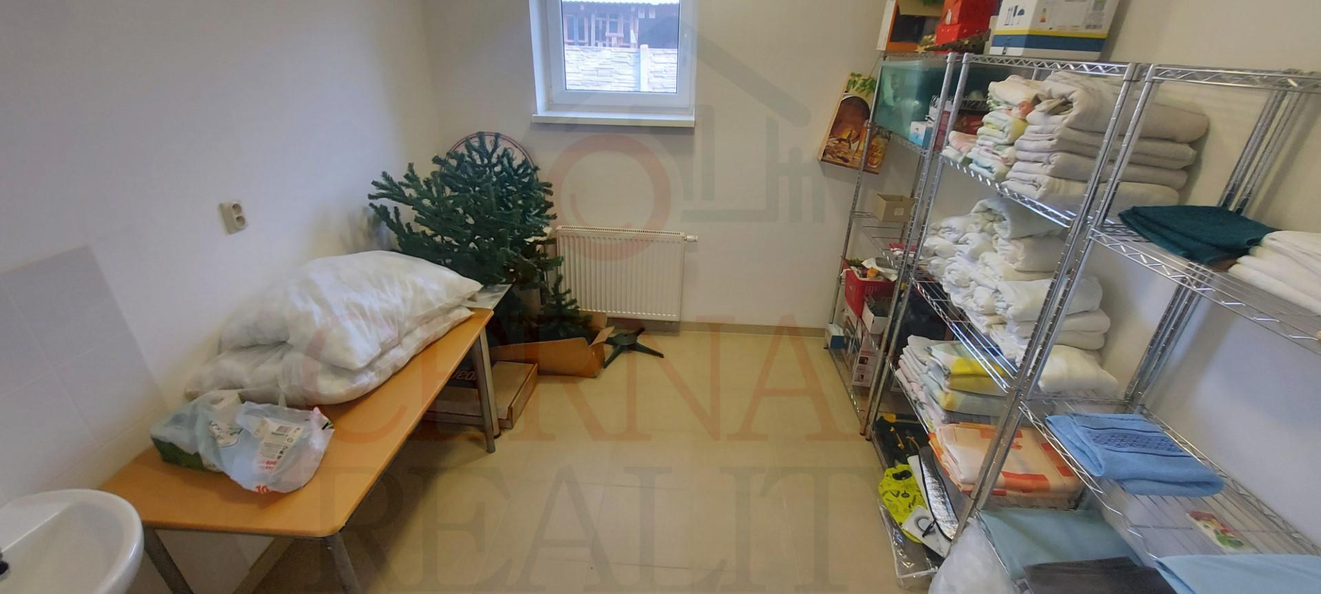 Pre personál penziónu je vyhradený vlastný vstup do objektu so šatňou, WC, sprchou a skladmi.